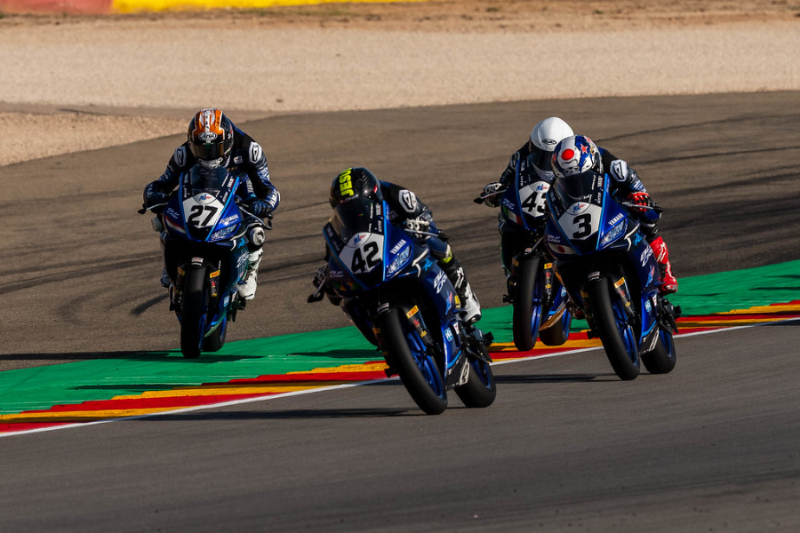 A dupla brasileira Mario Salles e Aymon Bocanegra superou desafios na semifinal do Mundial Yamaha R3 BLU CRU, realizada no circuito Motorland, em Aragón, na Espanha. Mario Salles chegou pertinho de mais um pódio, enquanto Aymon Bocanegra precisou superar adversidades para concluir as corridas do fim de semana. A etapa também consagrou o italiano Alessandro Di Persio como o campeão da temporada 2025, com uma rodada de antecedência.