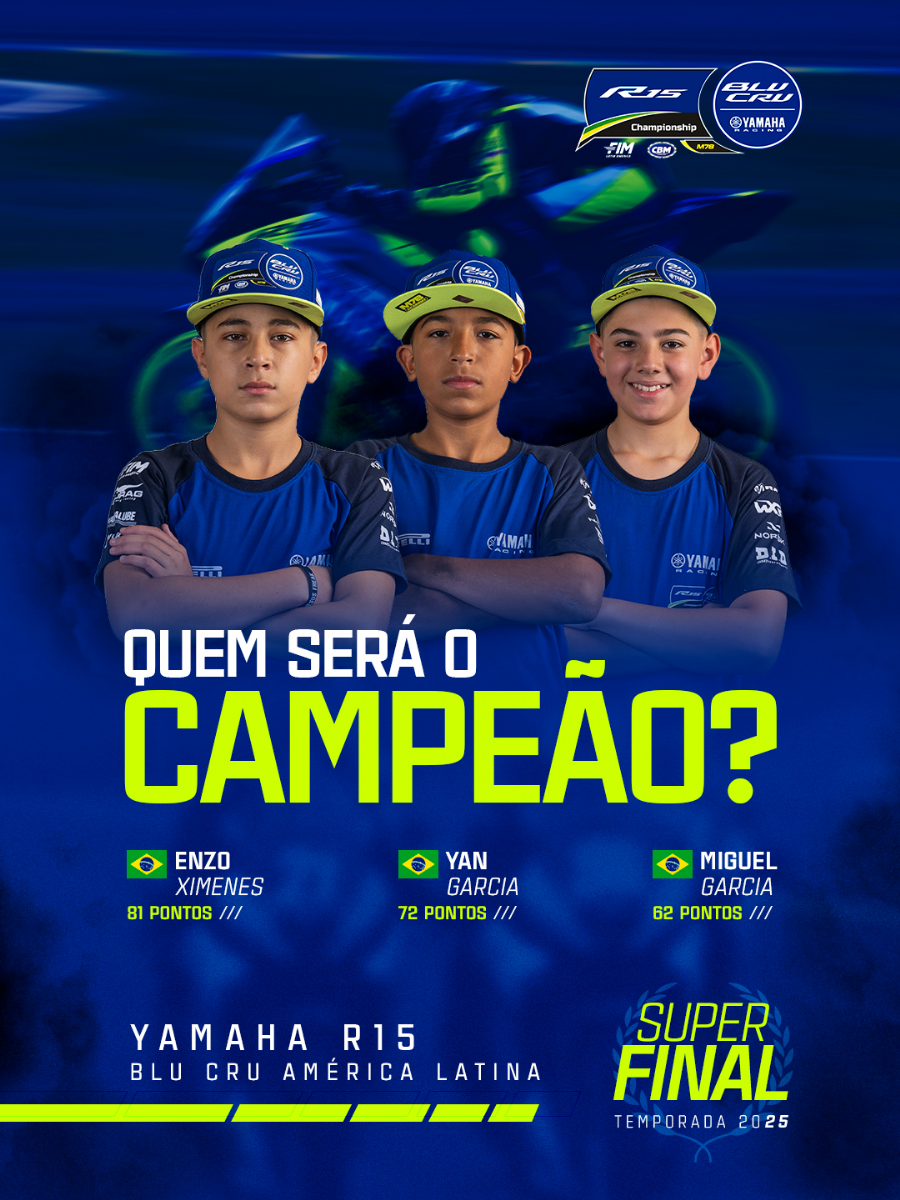 O momento mais aguardado pelos pilotos do Yamaha R15 BLU CRU América Latina está chegando: a Grande Final! O Autódromo Zilmar Beaux, em Cascavel, no Paraná, recebe a decisão da segunda temporada da competição de base mais disputada do continente, que acontece neste sábado (29). A corrida decisiva será transmitida ao vivo pelo canal do YouTube da Yamaha Racing Brasil, além da cobertura completa em tempo real no perfil @yamaharacingbrasil.