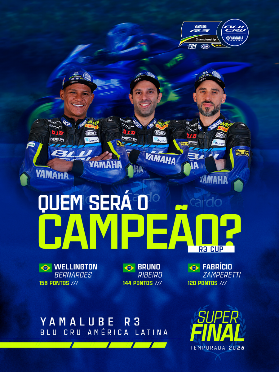 Quem será o campeão? Esta é a pergunta que toma conta da cabeça dos pilotos do Yamalube R3 BLU CRU América Latina à espera da Grande Final da temporada 2025. A disputa pelo título acontece neste fim de semana, nos dias 29 e 30 de novembro, no Autódromo Zilmar Beaux em Cascavel, no Paraná. As duas categorias da maior competição monomarca da América Latina seguem indefinidas, com muitos pilotos com chances de erguer o troféu, o que vai fazer com que a disputa pelos últimos 50 pontos do ano seja ainda mais intensa.